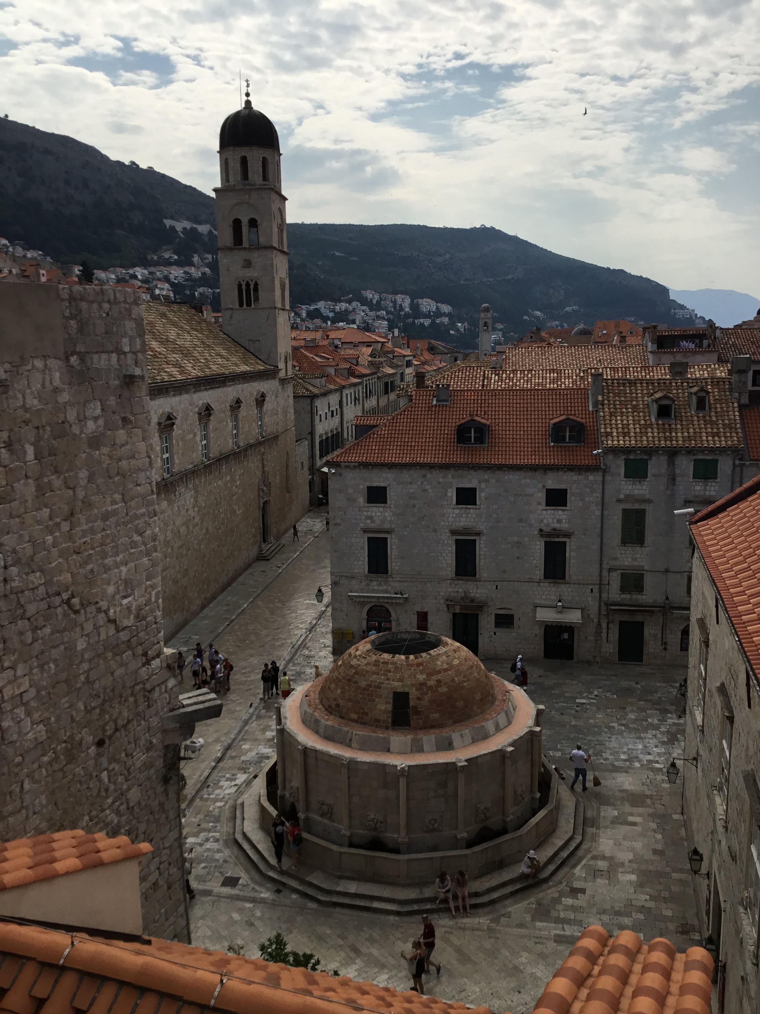We arrived in Dubrovnik port in Gruz after a very pleasant trip on the ferry from Mljet. From the port we caught the number 1 bus directly outside the ferry port bus stop (Luka Gruz 4) to Pilé gate bus stop which takes about 20 minutes. The bus may have the suffix a, b or c, don’t worry, jump on any of these as they all end up at Pile gate. If you prefer a taxi or Uber from the port you will find these nearby. Once you arrive at Pile gate, cross the bridge into the old town and directly ahead is the famous Stradun promenade, don’t forget to check out Onofrio’s fountain to the right once you’ve entered the town; the fountain is still in use and the water is safe to drink.