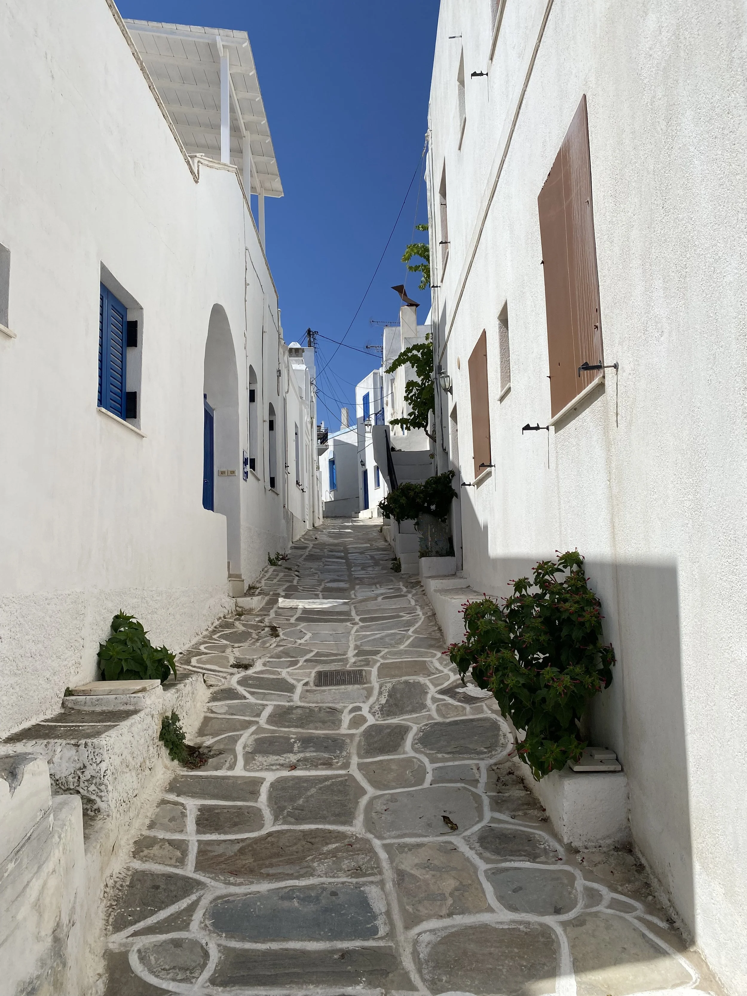 Finally, don’t forget to visit Lefkes. Easily accessible by bus, gorgeous Lefkes is the quintessential Greek village, adorned with bougainvillea, photogenic narrow lanes, some fab Greek tavernas, and pretty orthodox churches. Everyone gravitates to the Byzantine gem, the Church of Agia Tirada (Holy Trinity) and the pretty little square in it’s foreground, made from Parian marble, the church has beautiful frescoes, twin bell towers, and a peaceful graveyard that has lovely scenic views.