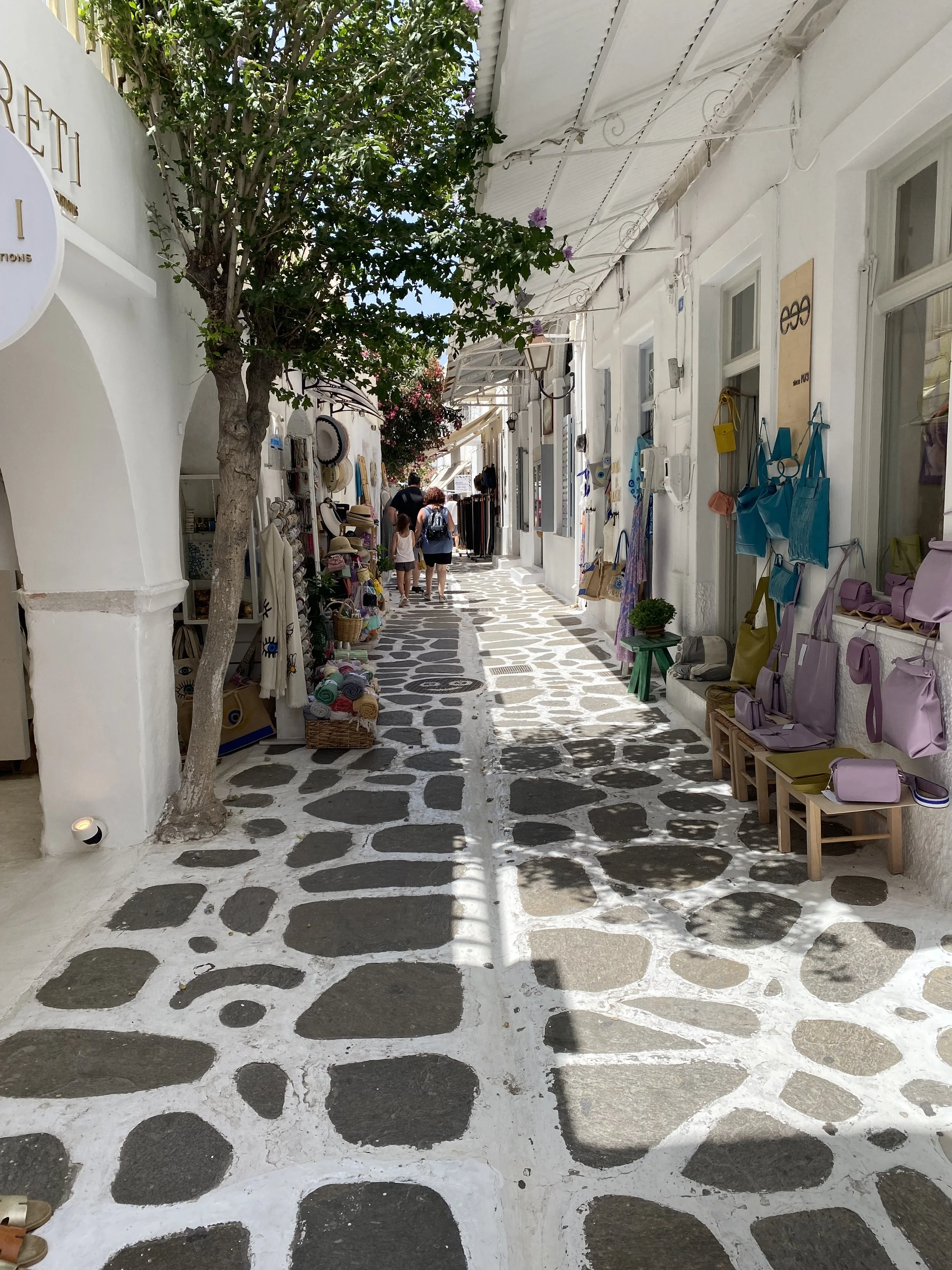As usual, the timing of the ferry arrival with the bus departure to Naoussa didn’t align, so we shared a taxi costing €30 per couple. We stayed at the lovely family run Akti Resort a few km’s away from the action. It was such a beautiful place with a great swimming pool and sea views across the Bay of Naoussa that we could literally enjoy laying on our bed. Breakfast was freshly made each morning with something for everyone, and a nice taverna to enjoy fresh seafood in the evening.