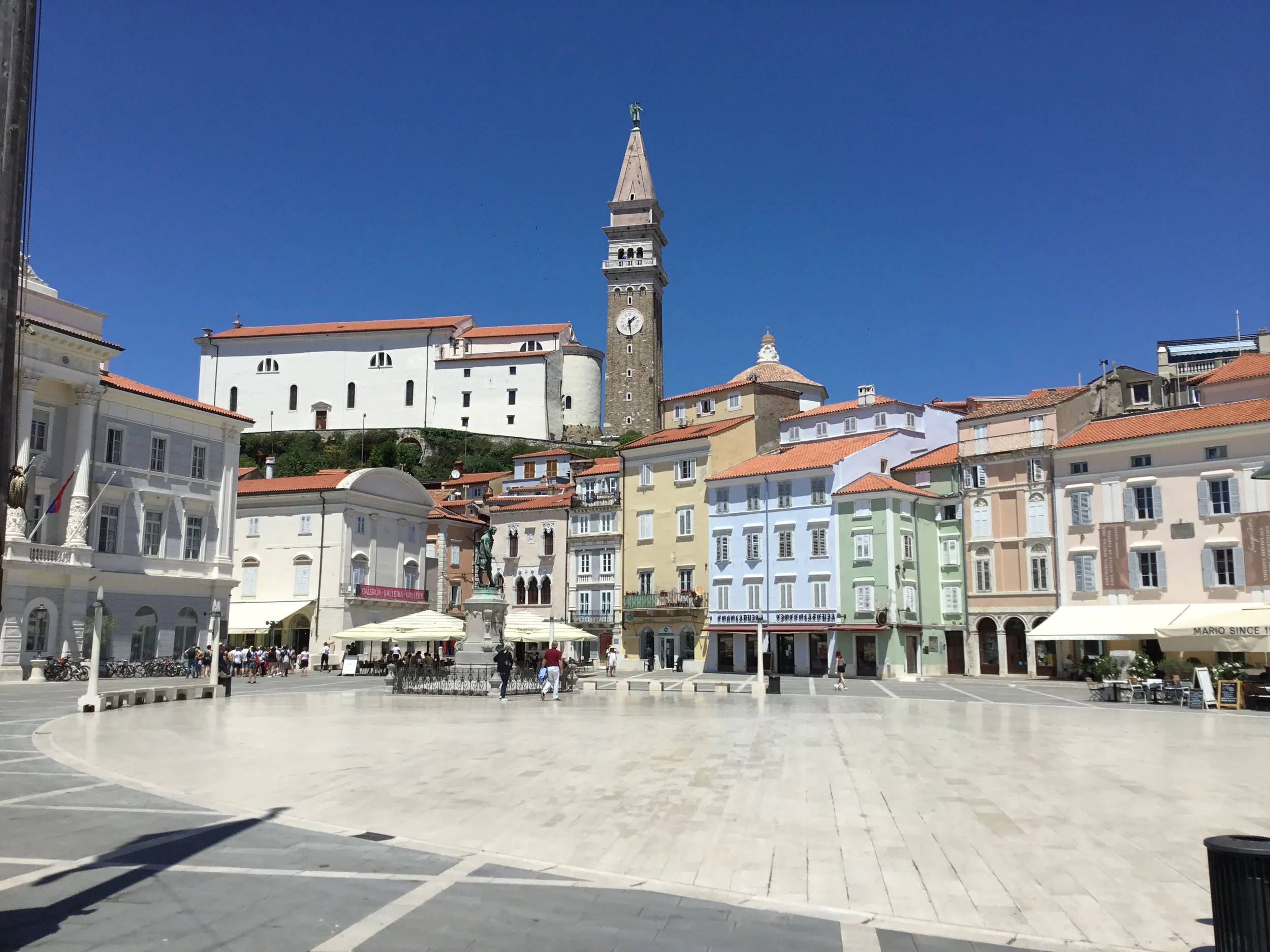 The main focus is the pastel-toned Tartinijev trg (Tartini square), named after the violinist and composer Giuseppe Tartini who was born here in 1692. You will find his birth place next to Church of St Peter, Tartini’s home is now a museum, cultural centre and small concert venue. Other notable buildings in the square are the red Venetian House, the Municipal Hall, and the Court House. And don’t forget to check out Tartini’s statue in the middle of the square. There are many cafes dotted around the square and is a pleasant place to relax with a coffee.