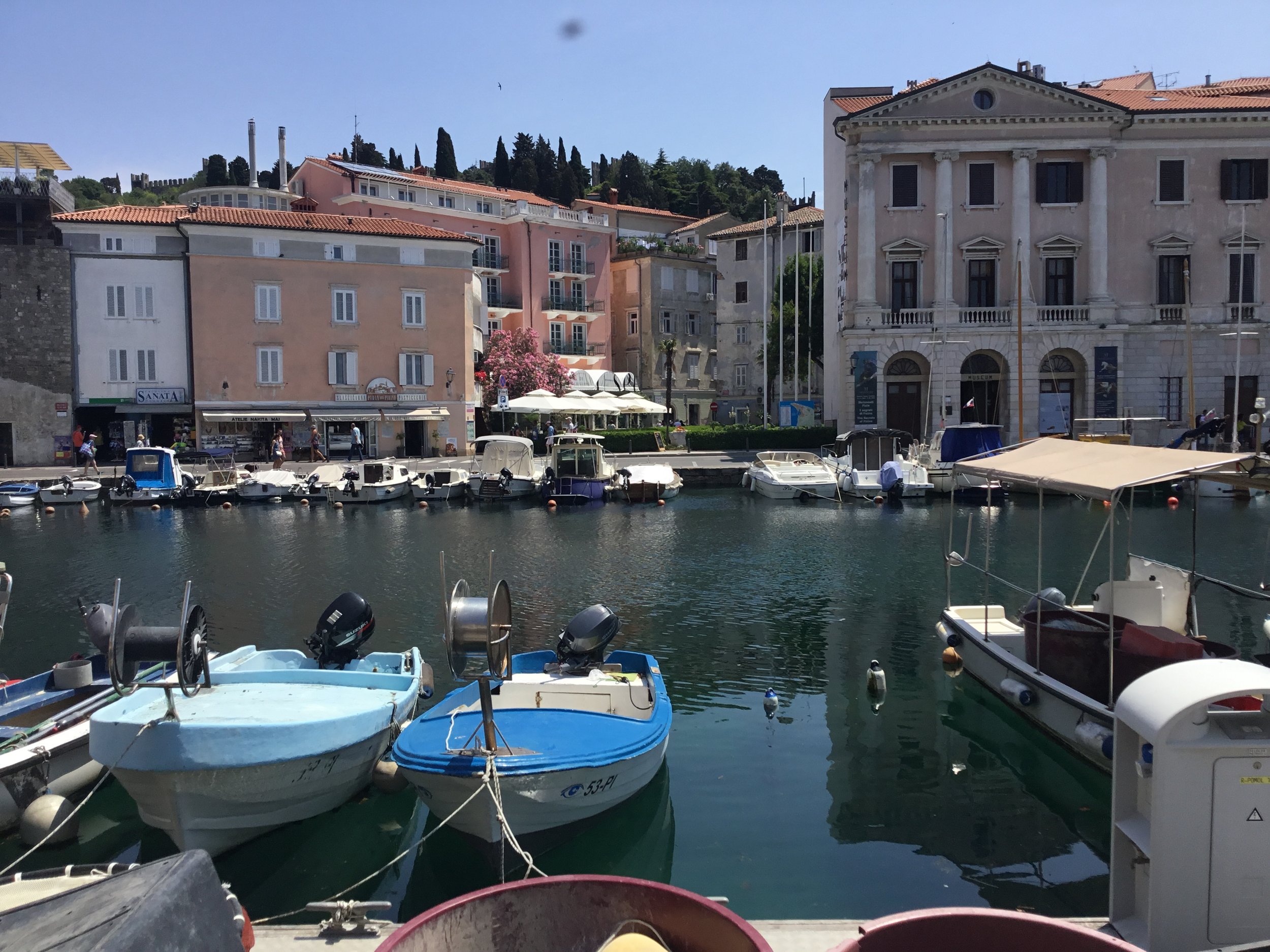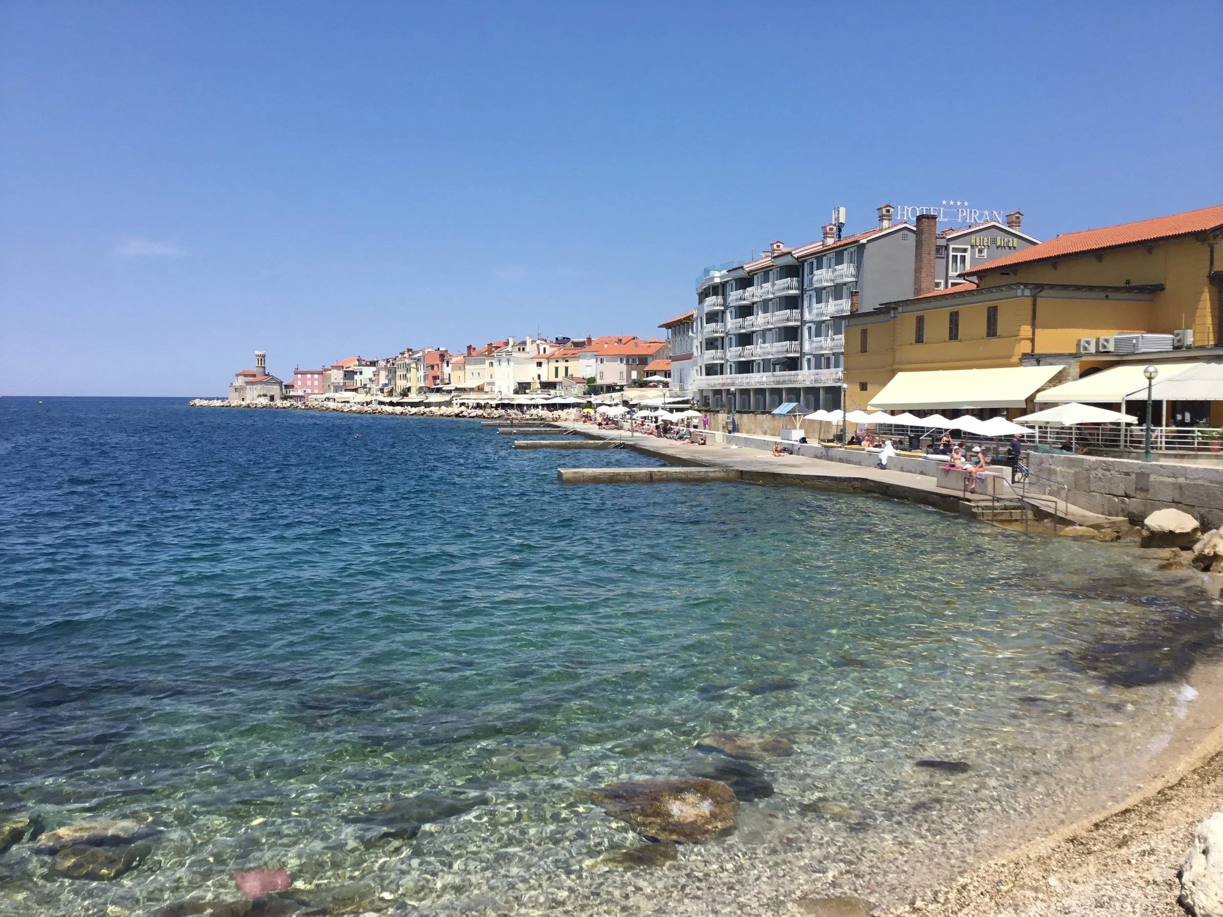 We stayed at the lovely beach front Hotel Piran, our room was small but comfortable, with a lovely breakfast room facing the water, and close to everything. It’s possible to swim off the pontoon directly from the hotel. There are plenty of restaurants nearby, just follow the promenade towards the lighthouse, the atmosphere is abuzz in the evening.