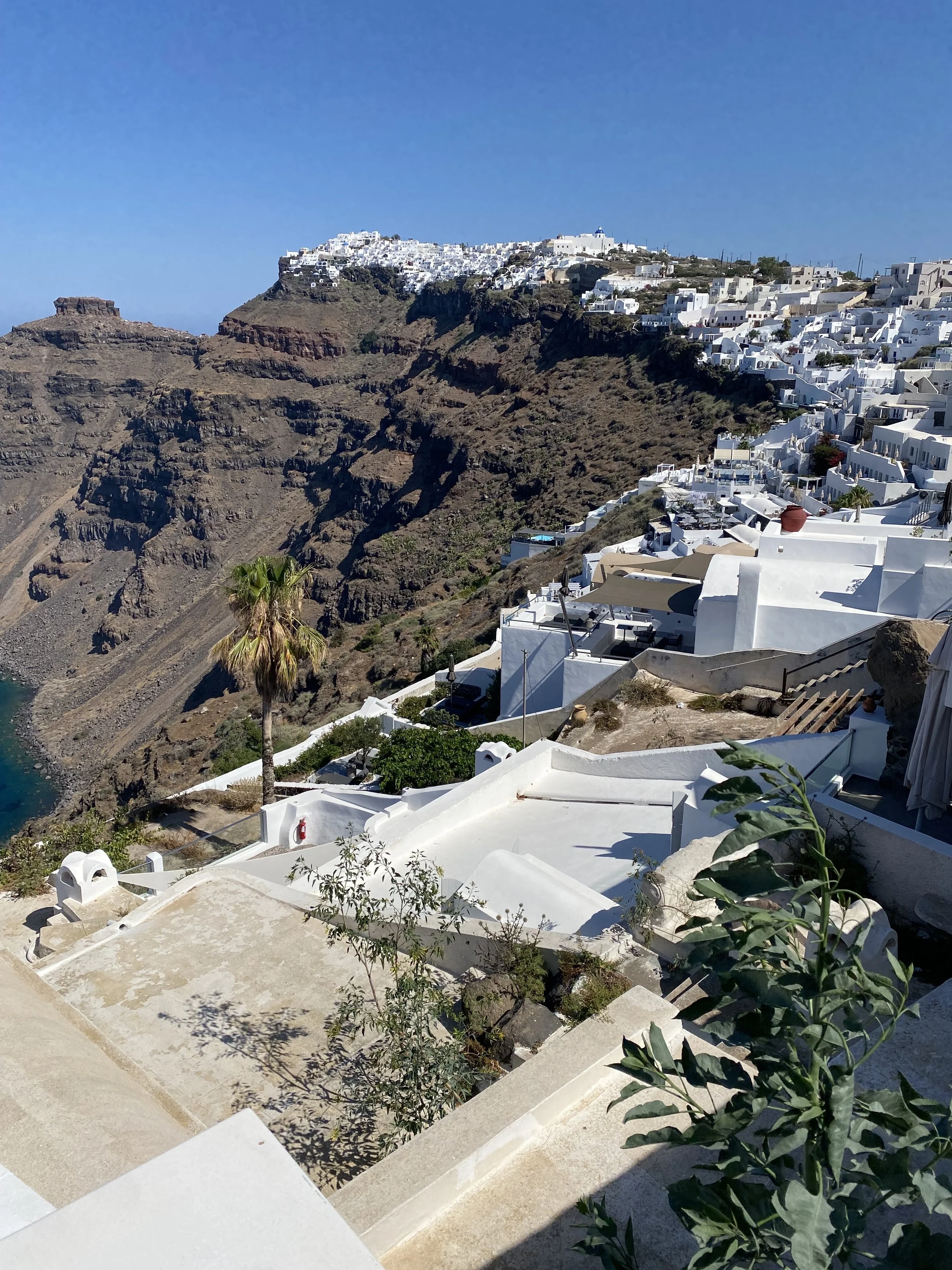 Fira, the island’s capital is an obvious choice. There’s plenty to see and do, the main bus station is in the centre of town, many of the best bars, restaurants and hotels cling to the caldera’s edge, and the best shopping is there, though the shopping in Oia is more upmarket.