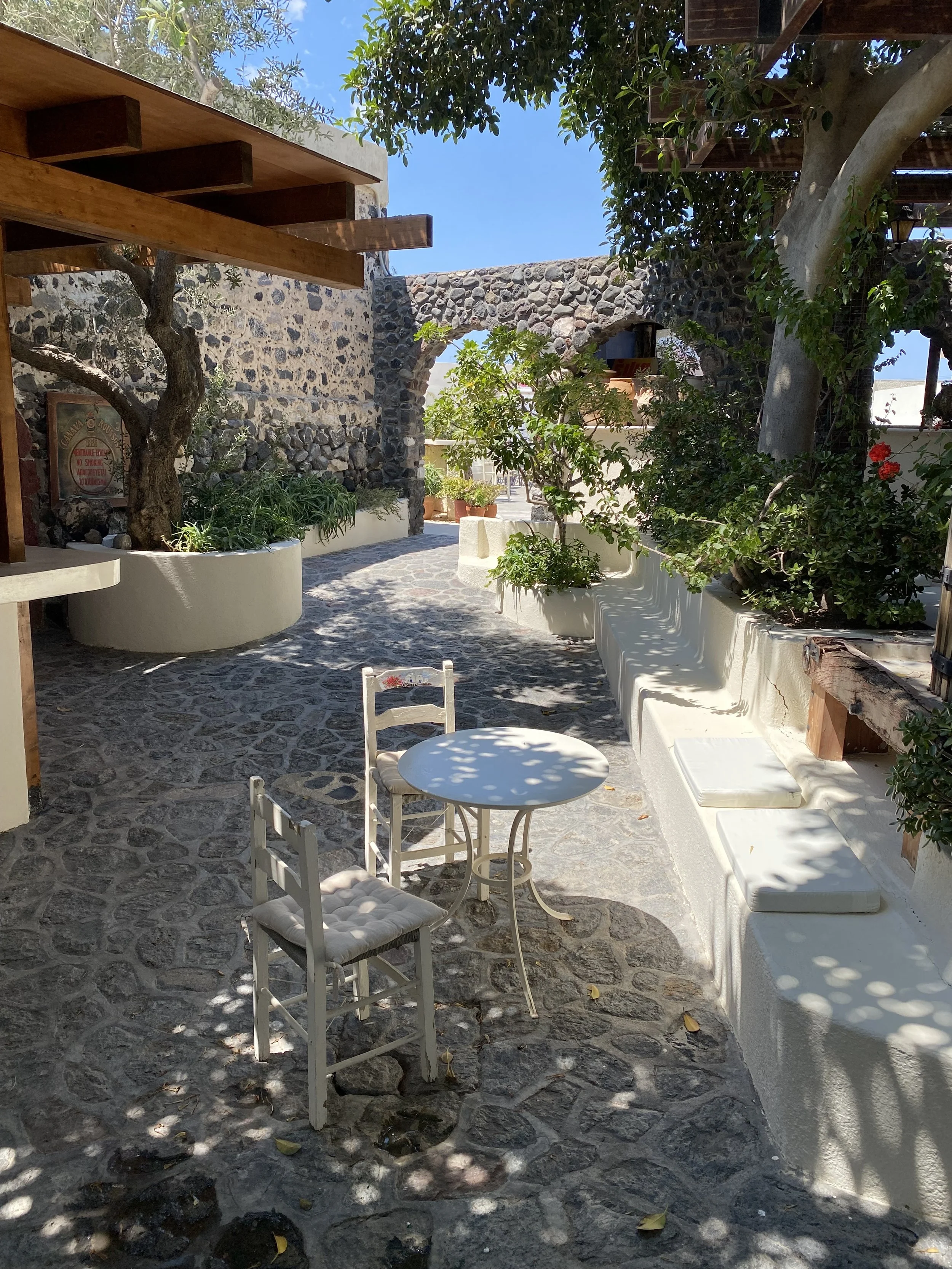 Neither of these towns have beaches. If that’s your thing then you should head to the east of the island and stay in Kamari or Parissa. Hotels, bars and restaurants line the beachfront, and there is a fun, party vibe to the place.